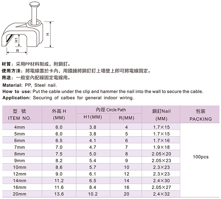 方型钢钉线卡系列